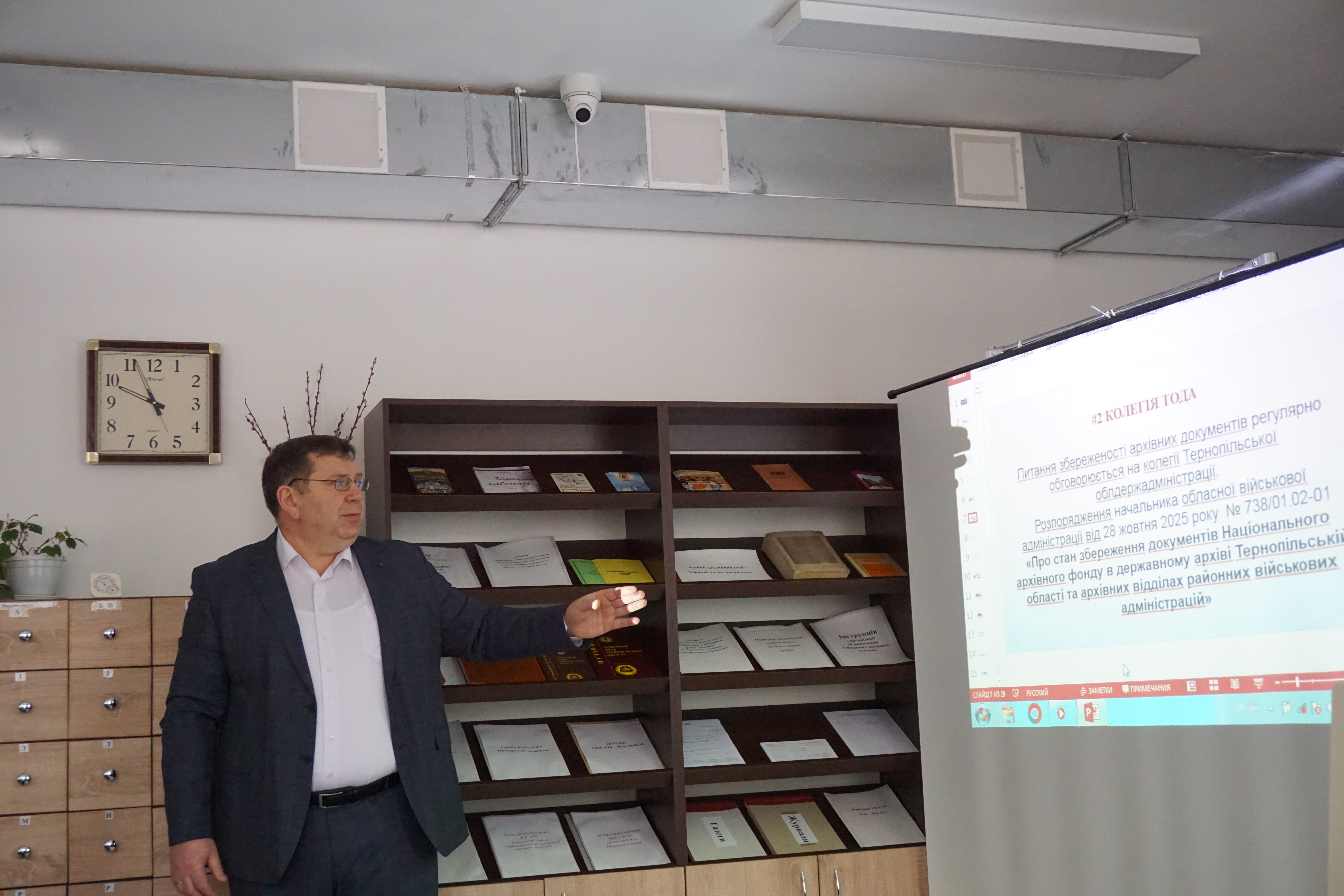 З нагоди відзначення Дня працівників архівних установ України 29 грудня 2025 року в державному архіві Тернопільської області відбулось розширене засідання колегії під час якого були присутні окрім членів колегії начальники архівних відділів районних військових адміністрацій