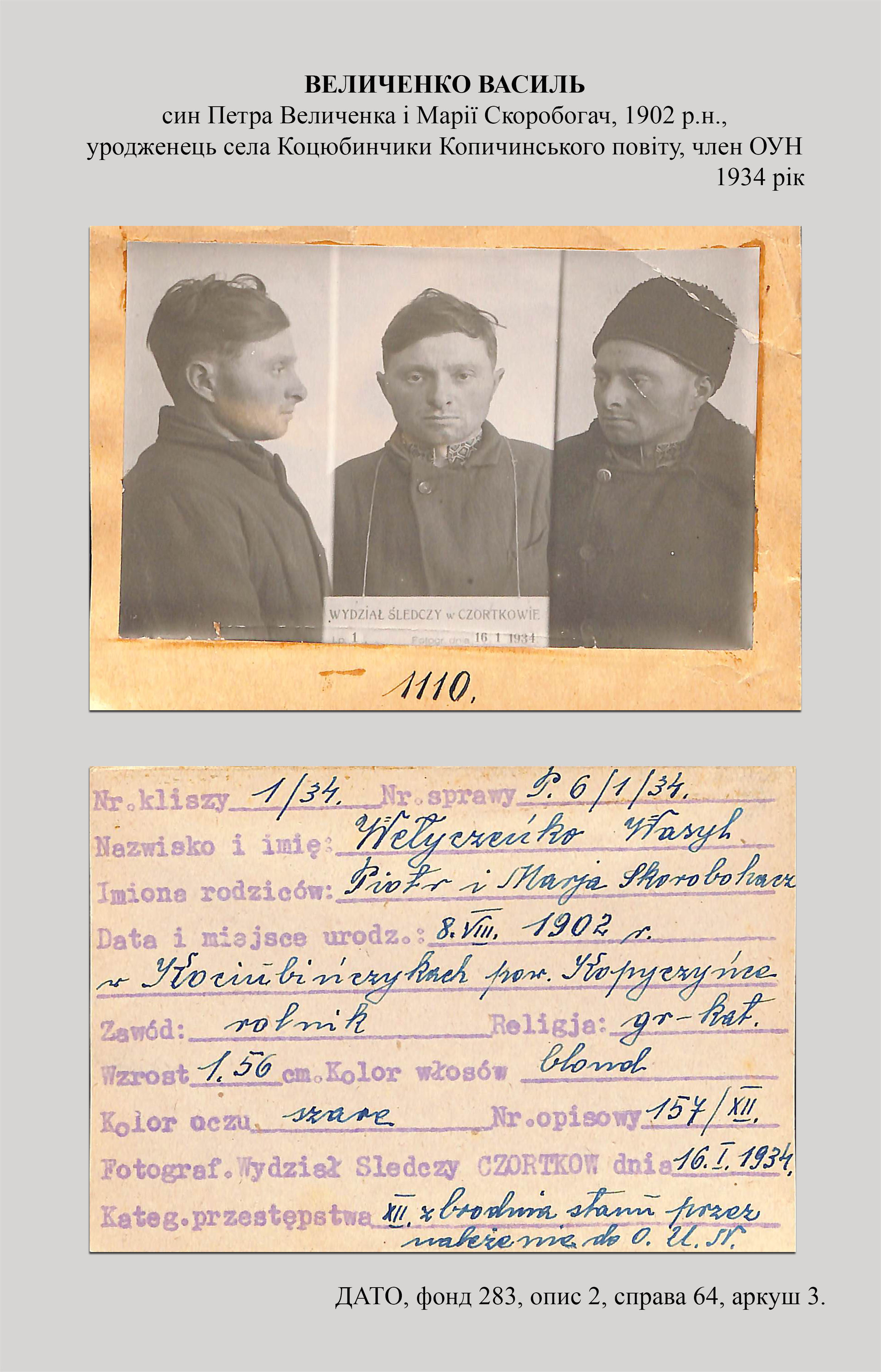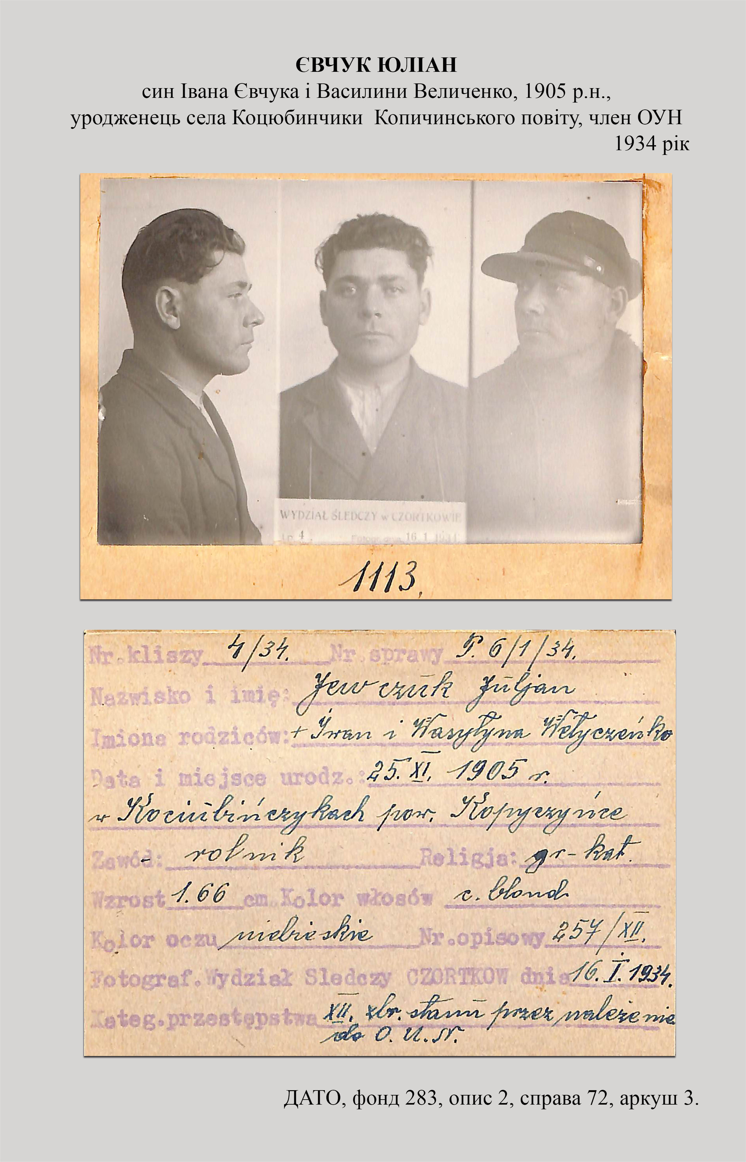| 50 | ЄВЧУК ЮЛІАН | син Івана Євчука і Василини Величенко, 1905 р.н., уродженець села Коцюбинчики Копичинського повіту, член ОУН | 1934 рік | ДАТО,фонд 283, опис 2, справа 72,аркуш 3 |