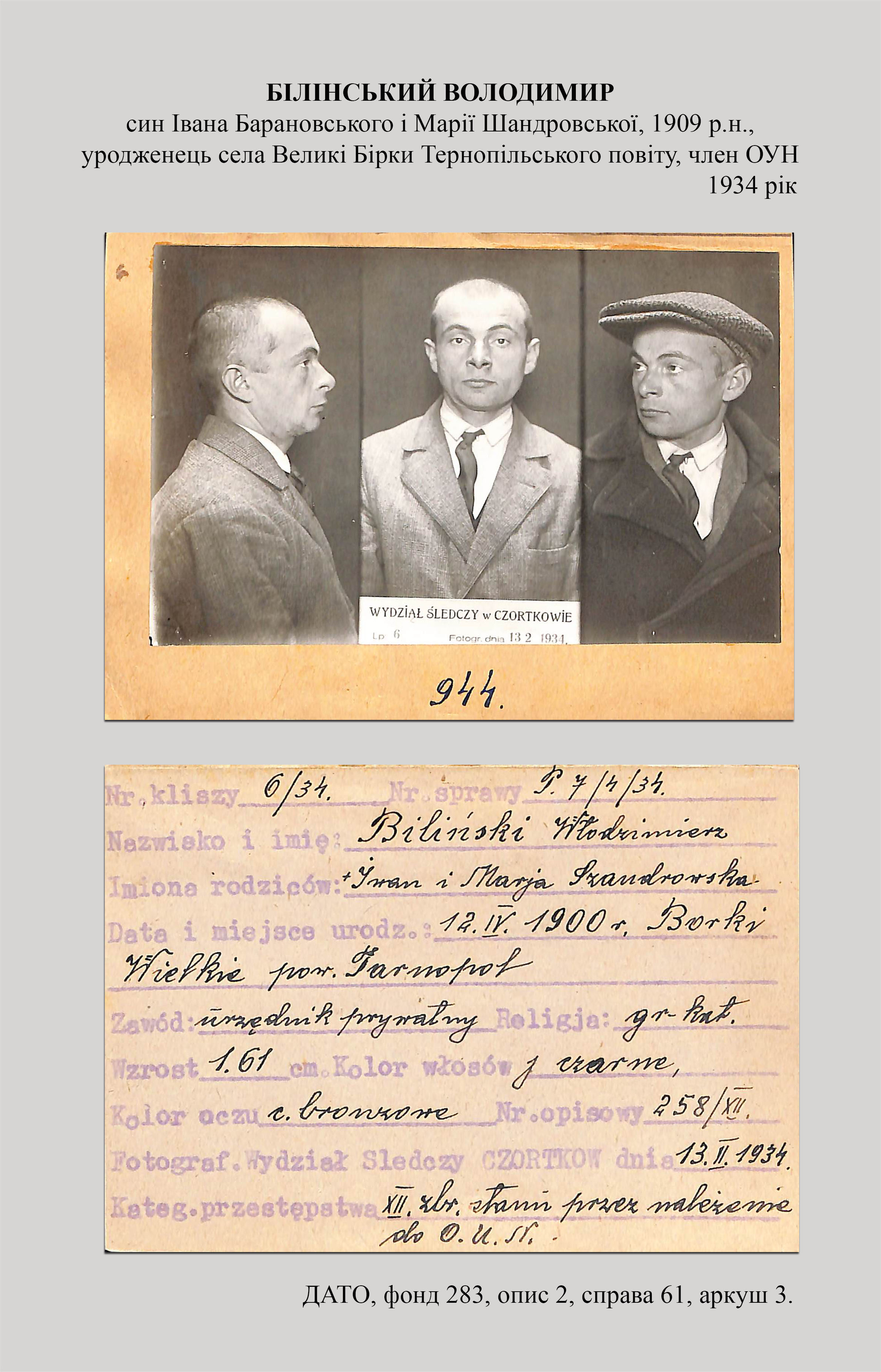 | 8 | БІЛІНСЬКИЙ ВОЛОДИМИР | уродженець села Великі Бірки Тернопільського повіту, | 1930-1934 рр. | ДАТО, фонд 284, опис 2, справа 5, аркуш 6, |