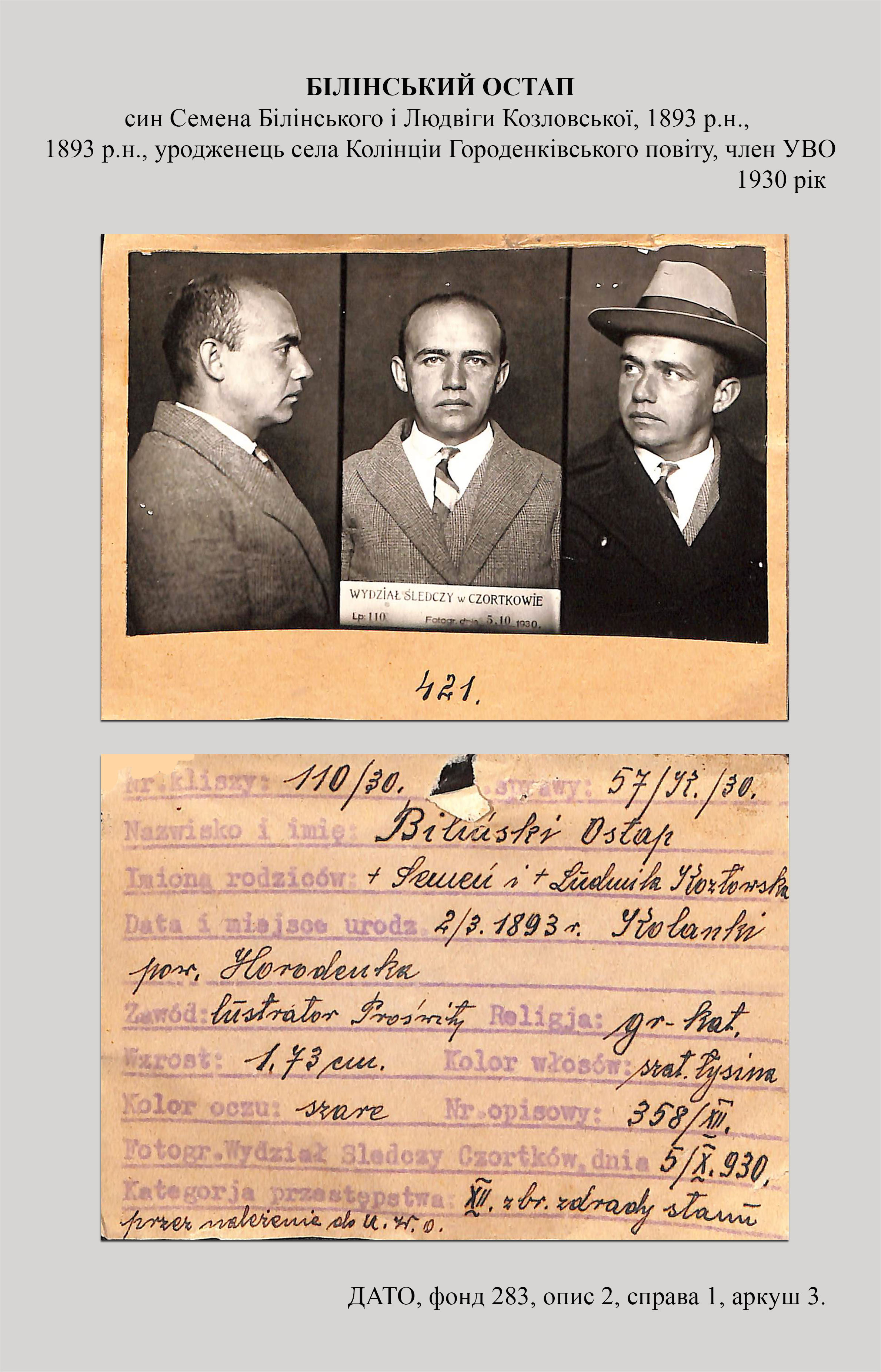 | 10 | БІЛІНСЬКИЙ ЛЮБОМИР | уродженець села Киданів Бучацького повіту, | 1929-1936 рр. | ДАТО, фонд 284, опис 2, справа 5, аркуш 5, |