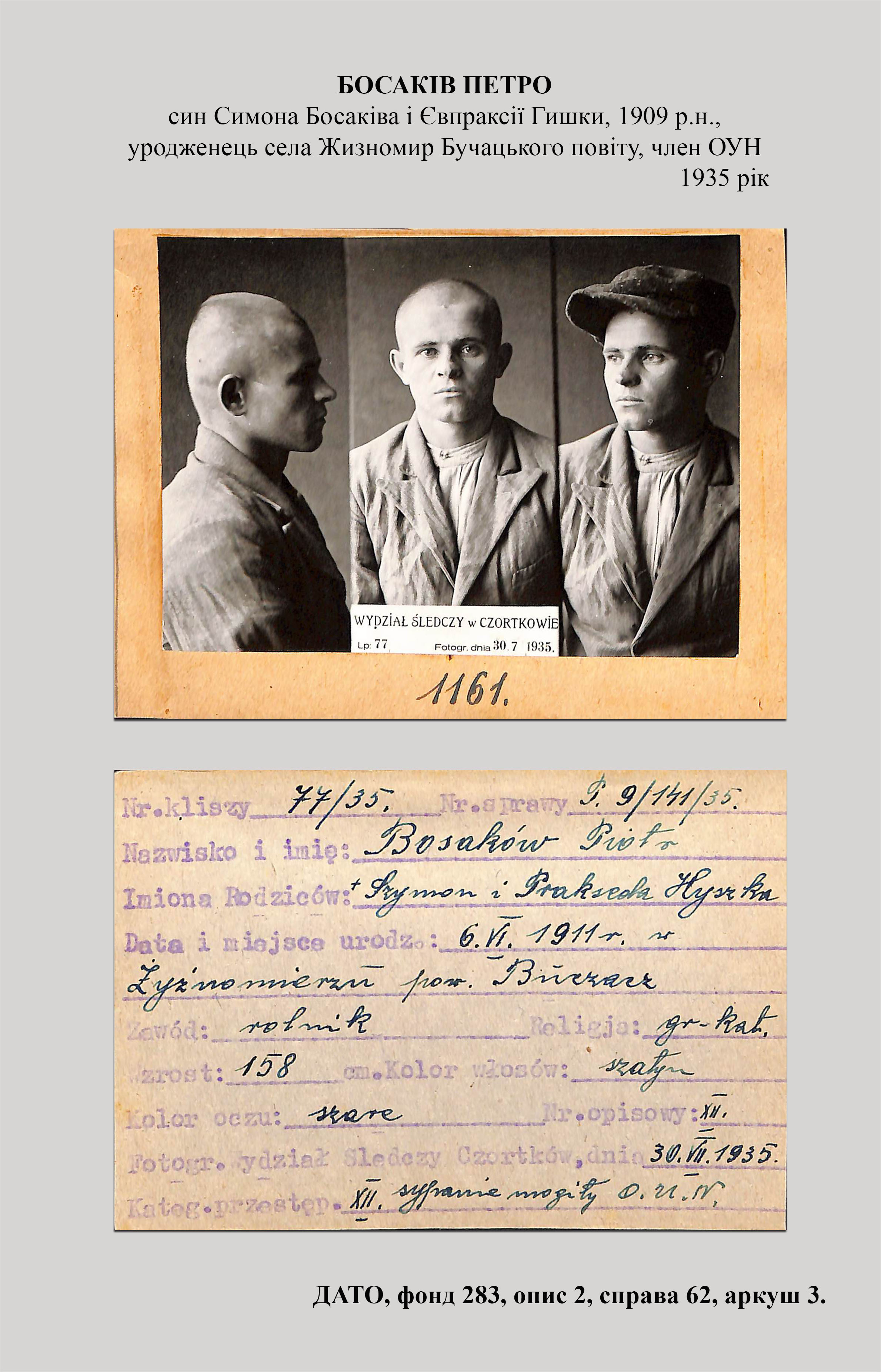 | 13 | БОСАКІВ ПЕТРО | житель та уродженець села Жизномир Бучацького повіту, члена ОУН | 1934-1938 рр. | |