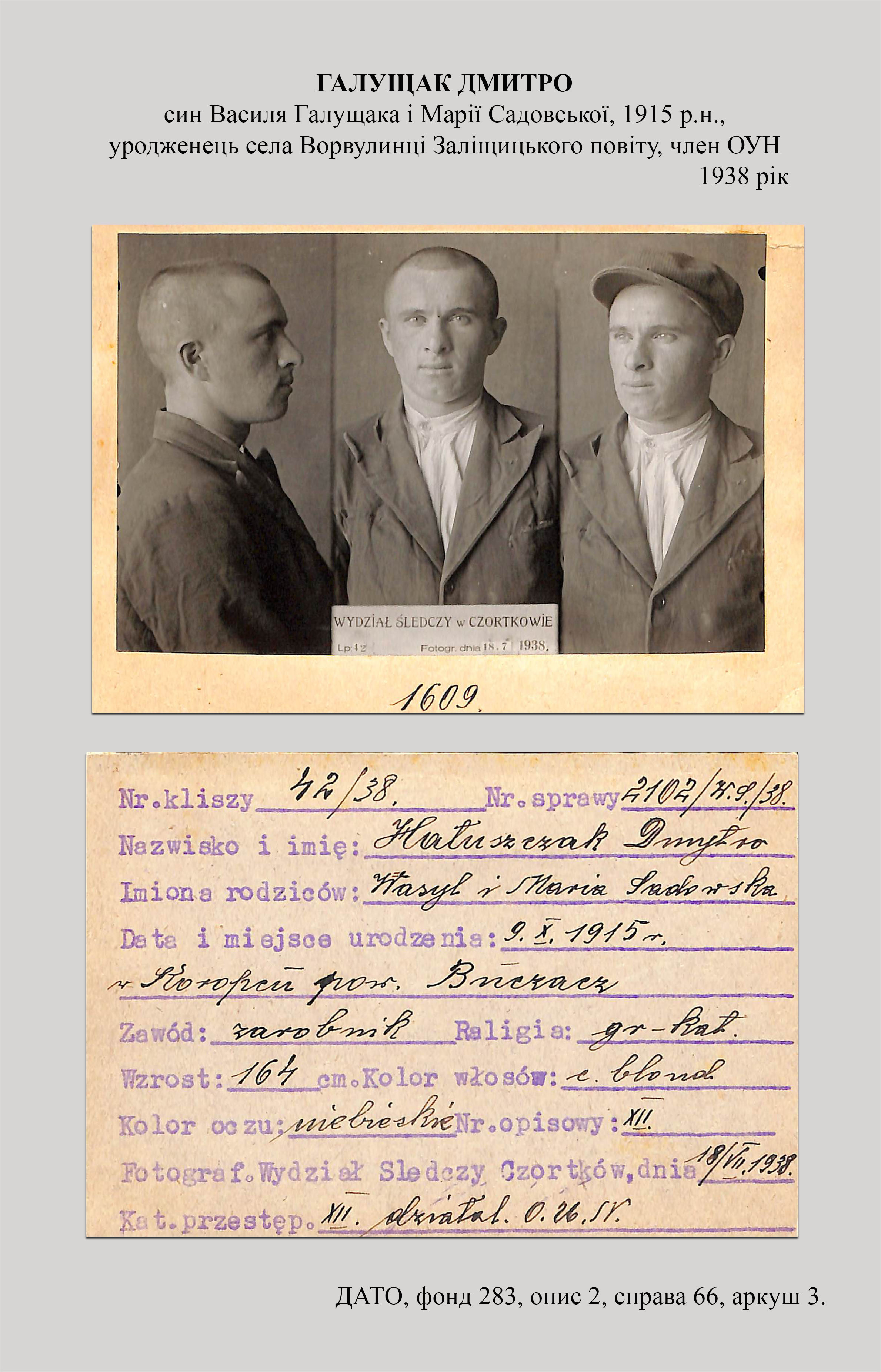 | 22 | ГАЛУЩАК ДМИТРО | син Василя Галущака і Марії Садовської, 1915 р.н., | 1938 рік | |