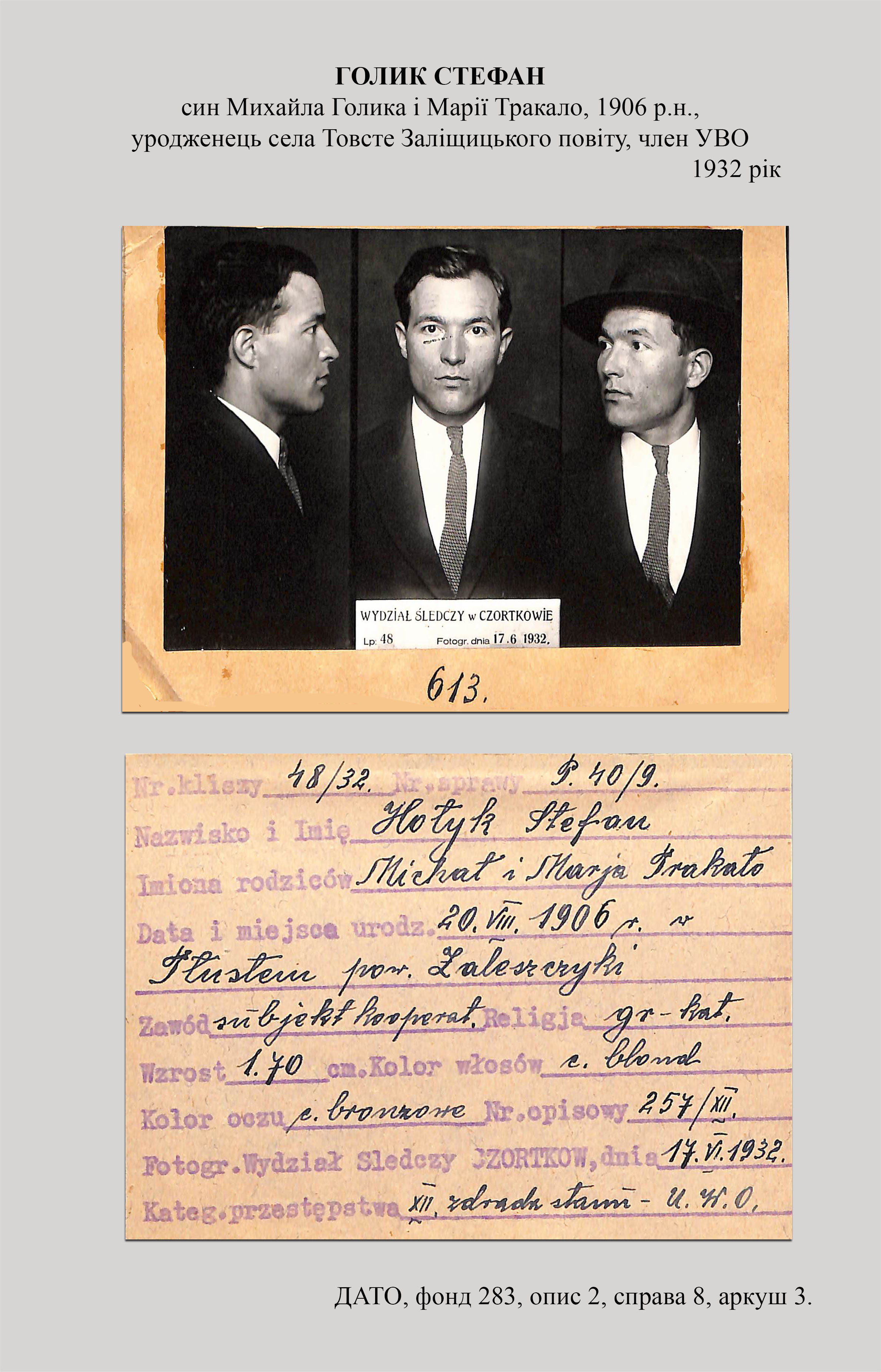 | 31 | ГОЛИК СТЕФАН | син Михайла Голика і Марії Тракало, 1906 р.н., уродженець села Товсте Заліщицького повіту, член УВО | 1932 рік | |